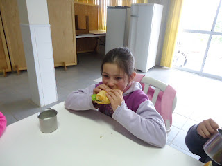 Lembram das alfaces que colhemos ontem? Hoje nosso lanche foi mais saudável, graças a elas... Olhem que beleza!