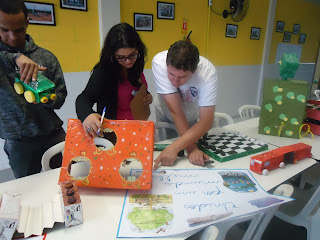 A gincana proposta pelo curso de Engenharia Ambiental da PUCPR está caminhando para as últimas provas. Nesta quarta-feira, o Prof. Jefferson e seus alunos estiveram no CISDIMI avaliando os resultados das 2 primeiras provas: confecção de brinquedos e instrumentos musicais com material reciclável; confecção de painéis com notícias referentes à preservação do meio ambiente. Os resultados surpreenderam a todos!